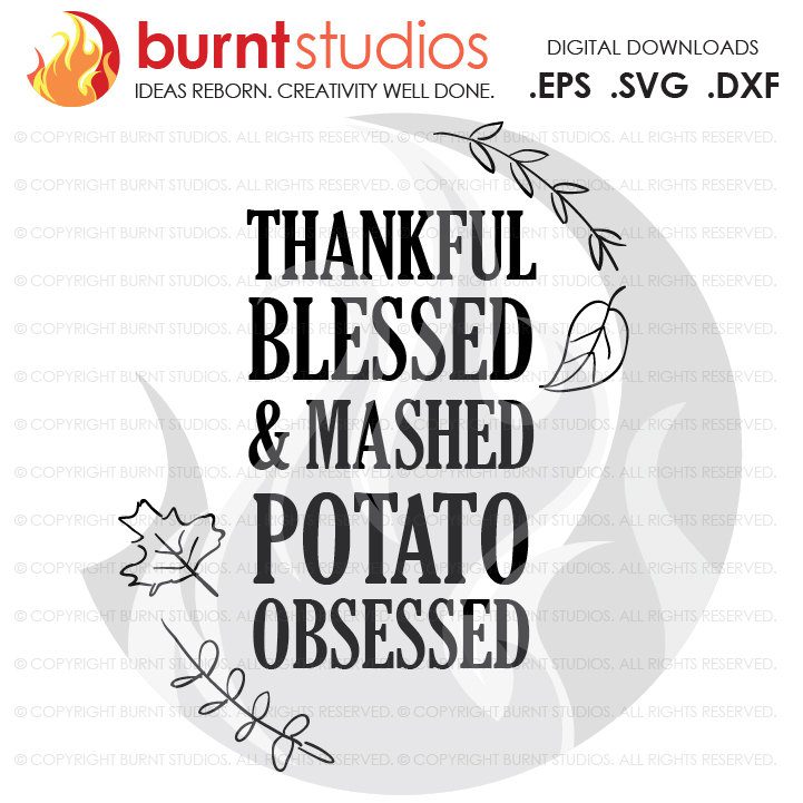 Digital File, Thankful, Blessed, and Mashed Potato Obsessed, Thanksgiving, Turkey, Blessing, Shirt, Decal Design, Svg, Png, Dxf, Eps file