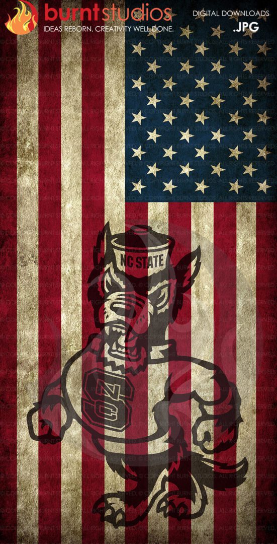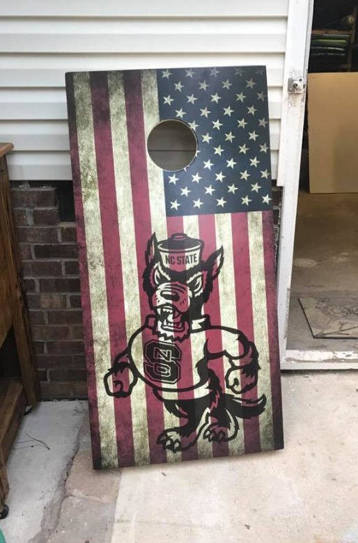 “Grunge Distressed USA American Flag with NCSU North Carolina State University Wolfpack Logo Corn Hole Board Bean Bag Toss Vinyl Wrap Decal (25″x49″) – Digital File: Jpg”