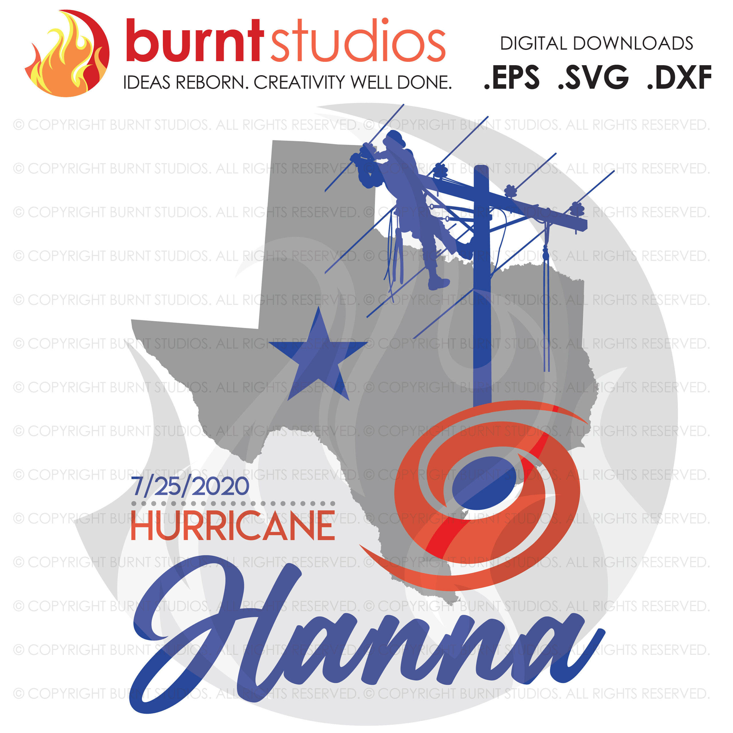 Hurricane Hanna Power Lineman SVG Cutting File, Texas, Storm chaser, Linemen, Line Crew, Climbing Hooks, Wood Walkers, Power, PNG